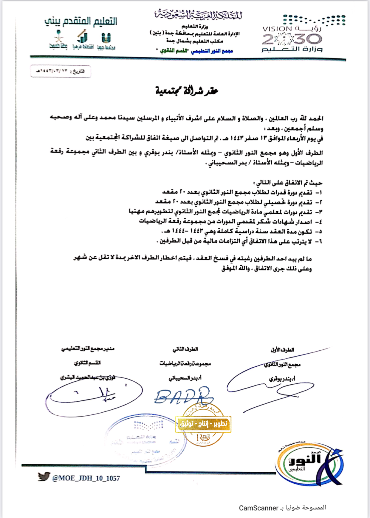 شراكة مجتمعية بين مجمع النور الثانوية ورفعة التعليمية